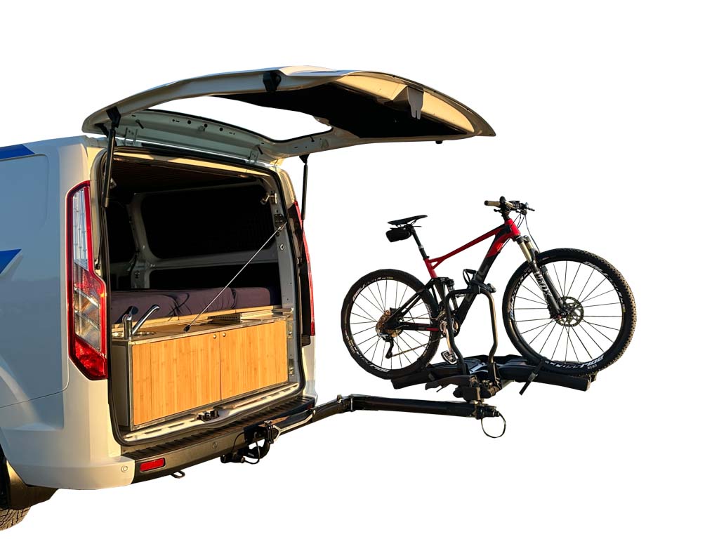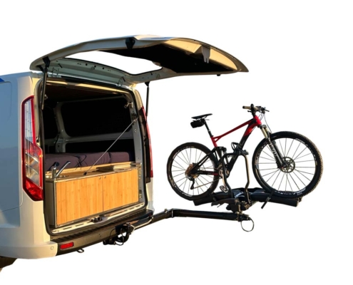 Ce système simplifie l’accès au véhicule, même lorsque les vélos sont chargés, tout en garantissant la sécurité et la polyvalence sur tout type de fourgons, vans ou camping-cars équipés d’une boule d’attelage homologuée.