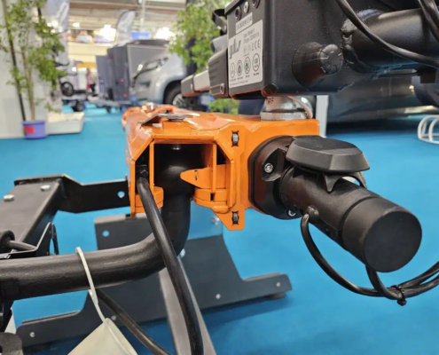 Le système SpaceMaker est composé d’un bras pivotant sur lequel repose une boule d’attelage déportée permettant d’accueillir un porte-vélos amovible.